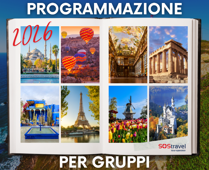La stagione 2026 è ufficialmente iniziata. SOS Travel presenta la nuova collezione di tour di gruppo e su richiesta dedicati a chi sta programmando di partire nel 2026. Trovi online idee di viaggio e programmi completi, flessibili e personalizzabili, pensati per gruppi di ogni tipologia—associazioni, aziende, scuole, CRAL, parrocchie e gruppi di amici.