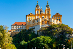 La prima tappa è la visita guidata del centro storico di Melk e della sua famosa Abbazia benedettina, capolavoro barocco arroccato sulla riva del Danubio.